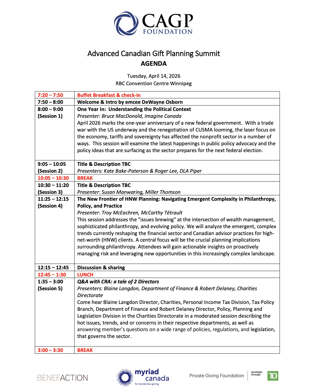Incorporating interactive and in-depth presentations and discussions on current topics, this gathering of advanced professionals provides a unique opportunity to study the highest level of philanthropic strategy for the biggest and most complex gifts being planned in Canada and globally.