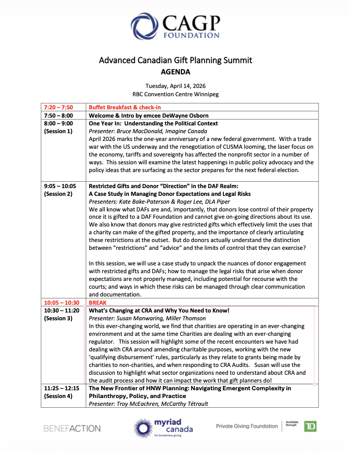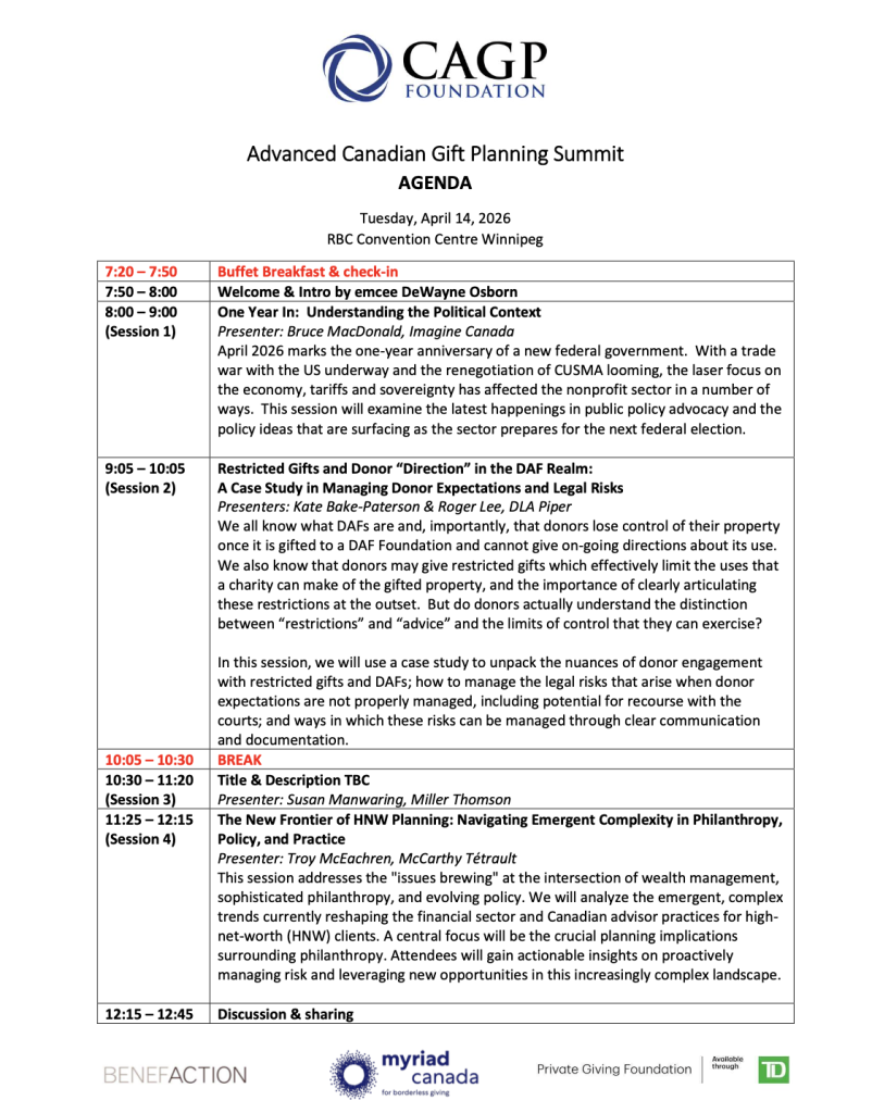 This session addresses the "issues brewing" at the intersection of wealth management, sophisticated philanthropy, and evolving policy. We will analyze the emergent, complex trends currently reshaping the financial sector and Canadian advisor practices for high-net-worth (HNW) clients. A central focus will be the crucial planning implications surrounding philanthropy, including a deep dive into the ripple effect of proposed and enacted US tax changes on private foundations and their influence on cross-border and domestic charitable strategies. Attendees will gain actionable insights on proactively managing risk and leveraging new opportunities in this increasingly complex landscape.